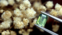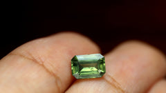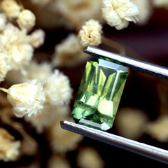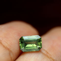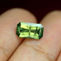 GemstoneNatural SapphireTreatmentLow Temperature HeatCarat Weight0.61 ctDimensions 6.12 x 3.80 x 2.25 mm Color Yellowish Green Clarity VS Shape Emerald Cut Origin Australia -