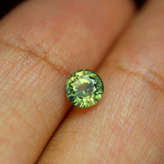 GemstoneNatural SapphireTreatmentLow Temperature HeatCarat Weight0.61 ctDimensions 5.00 x 4.92 x 2.94 mm Color Green Clarity VS Shape Round Origin Madagascar -