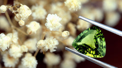View DetailsGemstoneNatural SapphireTreatmentLow Temperature HeatCarat Weight1.03 ctDimensions 7.02 x 6.73 x 2.94 mm Color Green Clarity IF (Flawless) Shape Trillion Origin Madagascar -