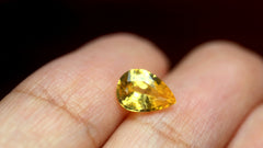 View DetailsGemstoneNatural SapphireTreatmentLow Temperature HeatCarat Weight1.26 ctDimensions 8.21 x 5.80 x 3.60 mm Color Yellow Clarity VS Shape Pear Origin Sri Lanka (Ceylon) -