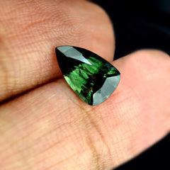 GemstoneNatural SapphireTreatmentLow Temperature HeatCarat Weight1.80 ctDimensions 9.41 x 5.93 x 4.04 mm Color Bluish Green Clarity SI Shape Trillion Origin Madagascar